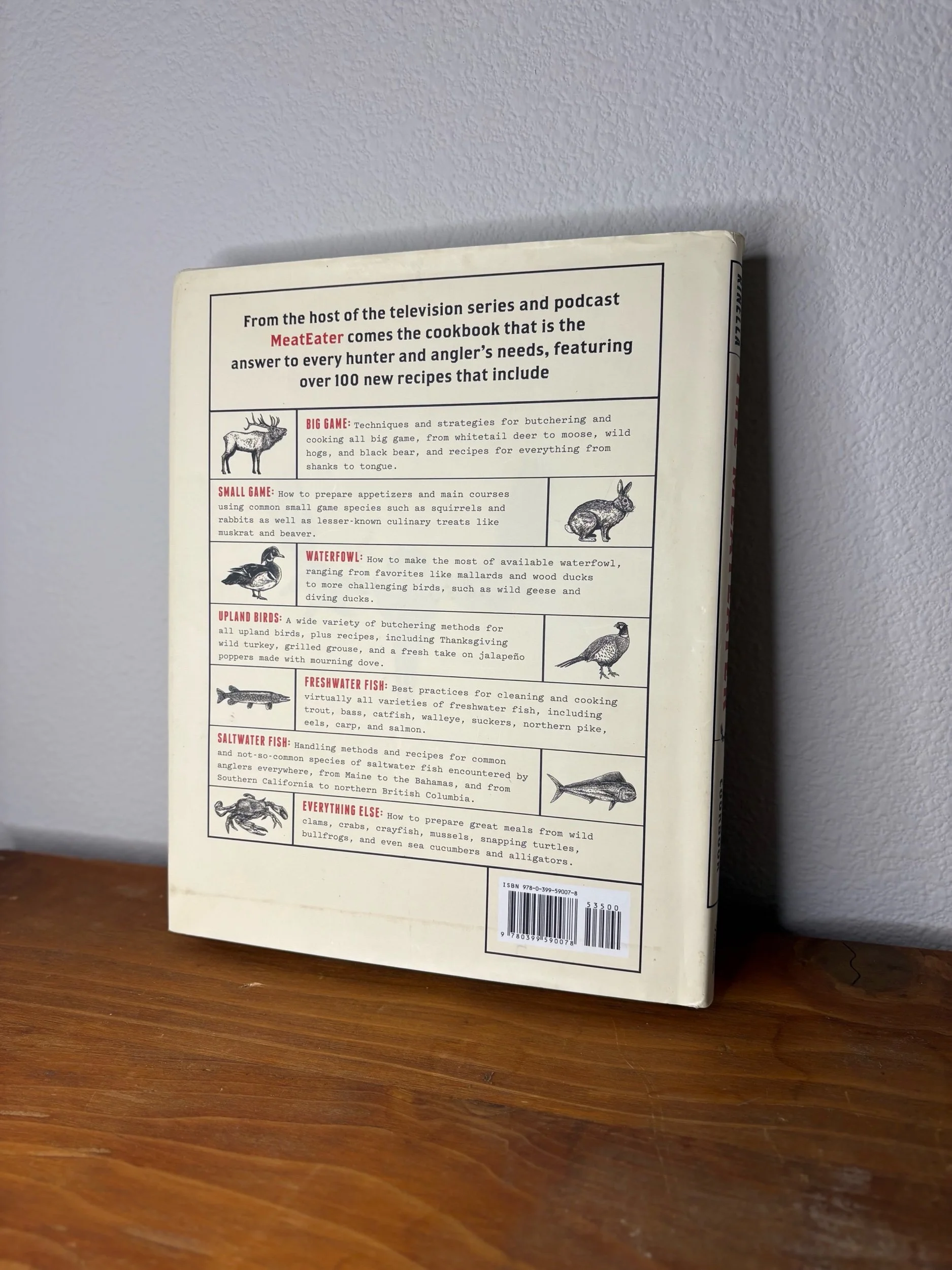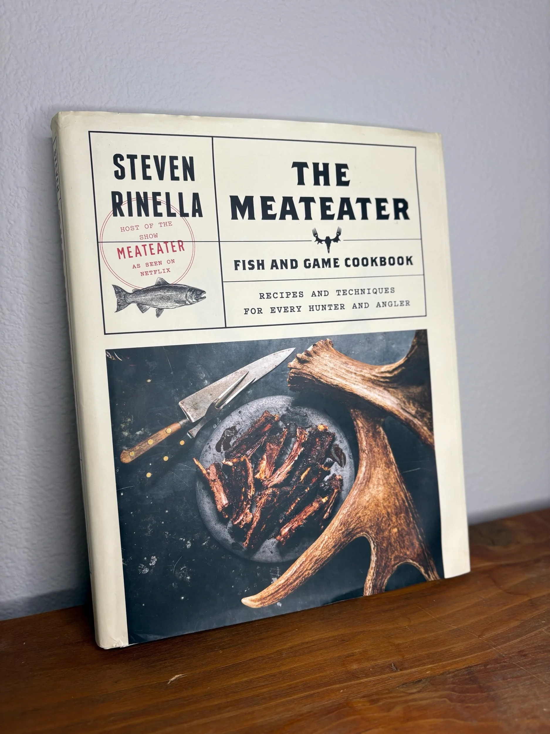 “The Meateater Cookbook” by Steve Rinella. This book is in great condition. No ripping or tearing anywhere, no ruined pages, etc.