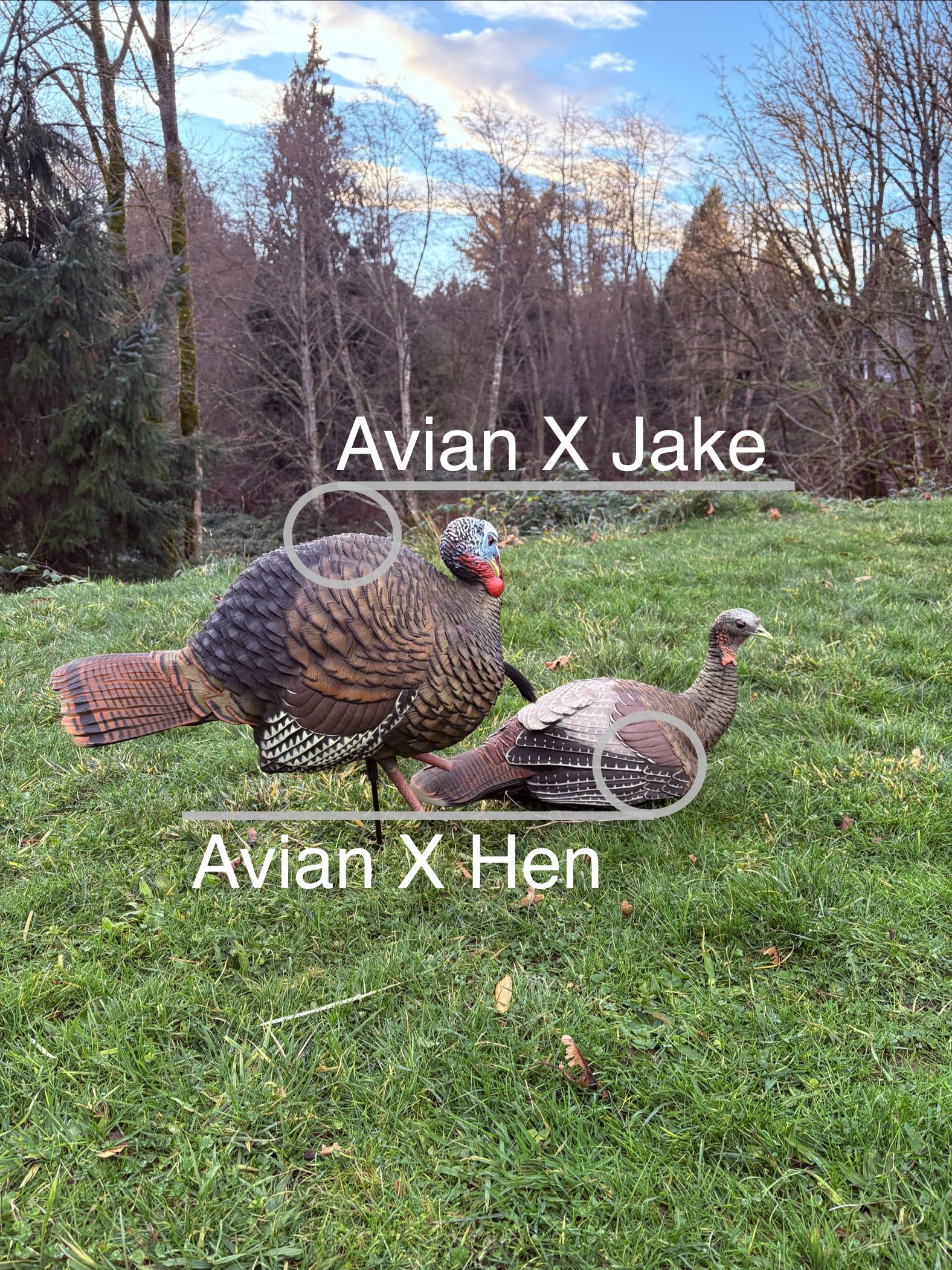 An inflatable Avian-X 3/4 strut Jake turkey decoy. This decoy is in great shape. Has not take any hits. It inflates and deflates as it should, and looks great!